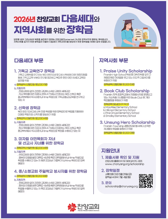 찬양 교회 장학금 신청 안내 2026