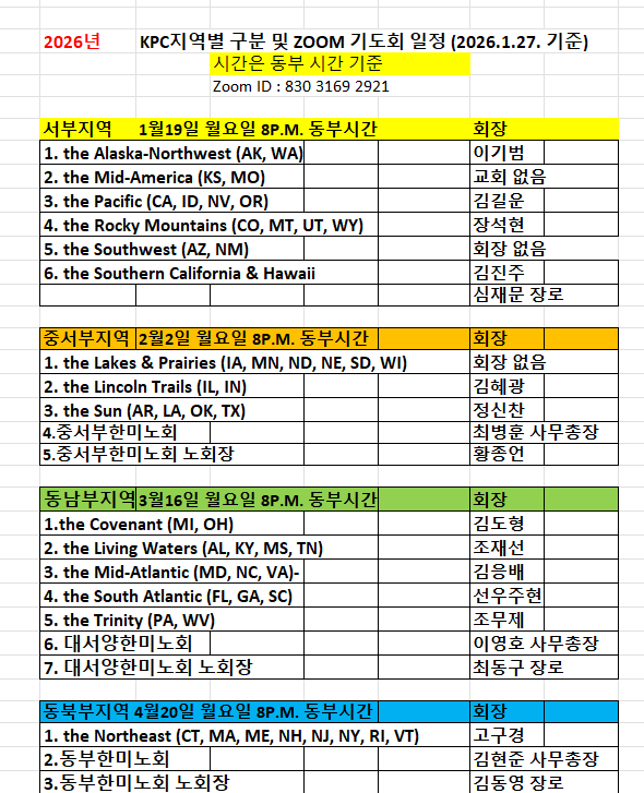 2026년 지역별 KPC 상반기 기도회 일정