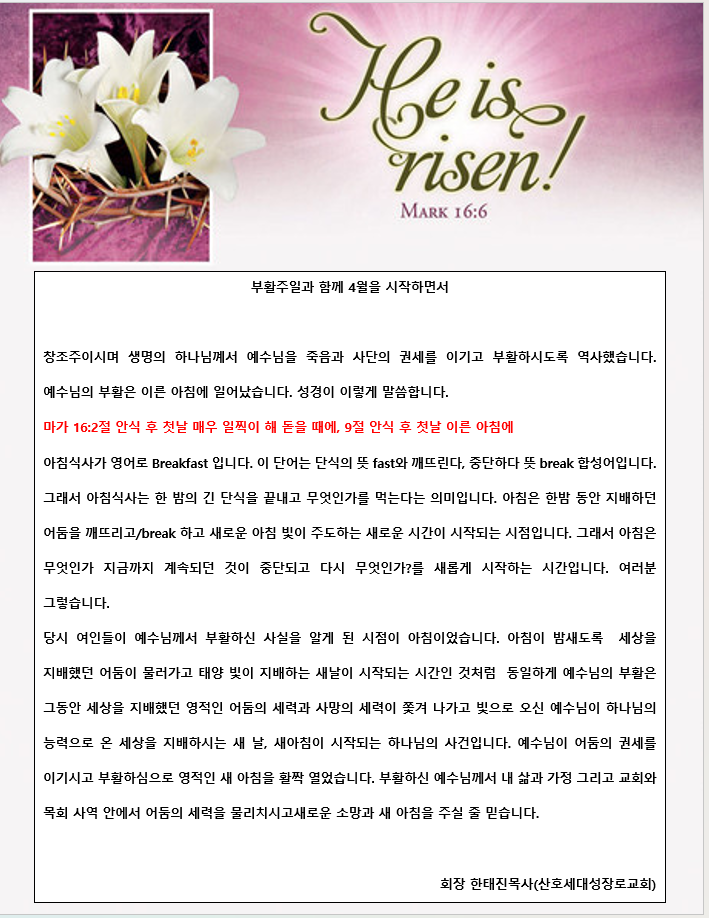 : 일시: 2026년 4월 12일(주일) 오후 4시